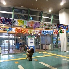 また、園児の皆さんが作った「こいのぼり」は、横浜市スポーツ医科学センターのホールに飾ってあります。