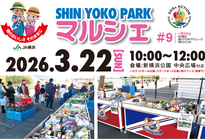 新横浜公園では、地元横浜産をメインとした「SHINYOKOPARK マルシェ」を開催します。