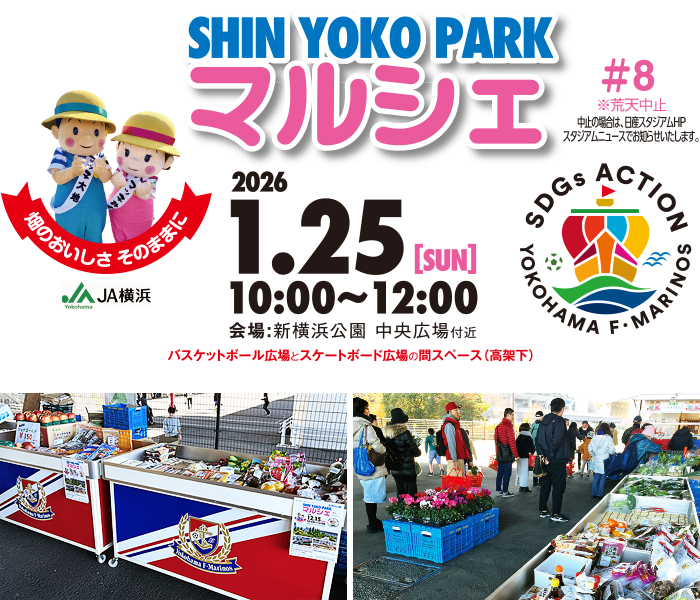 新横浜公園では、地元横浜産をメインとした「SHINYOKOPARK マルシェ」を開催します。