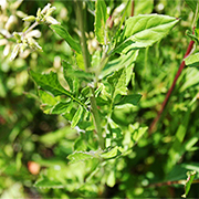 キツネアザミは、春に薄紫色の筒状の花を咲かせます。「アザミ」という名前がつくと、トゲトゲして痛い植物が多いですが、キツネアザミの葉はギザギザしていますが柔らかく、葉の裏は細かい白い毛に覆われているのが特徴です。新横浜公園では、大池(仮称)近くの草地に生えています。