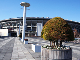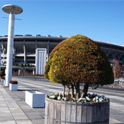 ゴールドクレストは、葉が針のようになっている針葉樹です。樹形も綺麗で害虫がつきにくいため、庭木としてもよく使われます。新横浜公園では、日産スタジアム西ゲート橋の樽プランターに植栽されています。